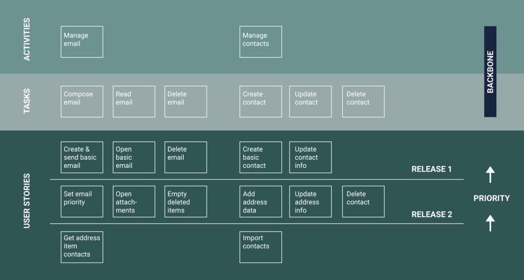 Man spricht bei den Aktivitäten und Teilschritten im User Story Mapping auch vom „Backbone“, dem Grundgerüst einer User Story Map.